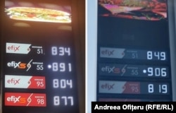 La o benzinărie din București, în noaptea de marți spre miercuri, carburanții s-au scumpit cu 15 bani.