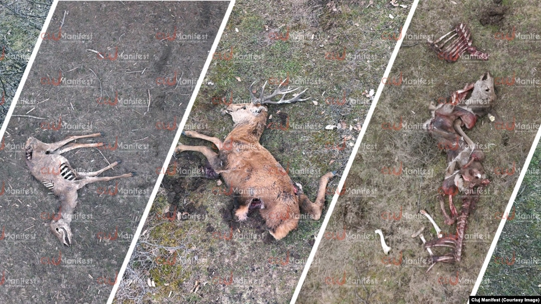 „Cu câteva zile înainte, trecând pe drumul public, de lângă țarc, am văzut o grămadă de corbi adunați deasupra pădurii, am oprit și am văzut un cerb mort”, spune activistul pentru Europa Liberă.